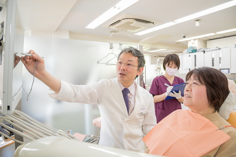 現在お悩みの点をじっくりお聞かせください。それをお伺いしたうえで、解決法をお話しさせていただき、入れ歯の作り方、入れ歯の種類、治療内容、その費用についてご説明をいたします。