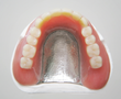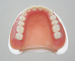 一般的な保険の入れ歯は骨格部分をピンク色のプラスチックで作ります。それに対して金属床の入れ歯は金属で作ります。文字通り金属を使うため、たわみにくく、丈夫な入れ歯を作ることができます。金属なのでプラスチックと比較して、格段に薄く仕上げることができるので、違和感が少なく、お口の中を広く感じさせてくれます。さらに、熱の伝わりの良さで、より一層美味しく食事を楽しむことができます。